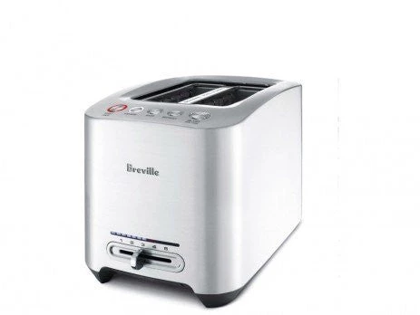 900-watt 2-slice toaster with intelligent one-touch auto lowering function Push-button controls for toast, a bit more, bagel, defrost, and lift-and-look functions LED panel illuminates according to selected setting on variable browning control Brushed die-cast metal housing; end-of-cycle beep; 1-1/5-inch-wide slots; cord wrap. 1-year limited warranty