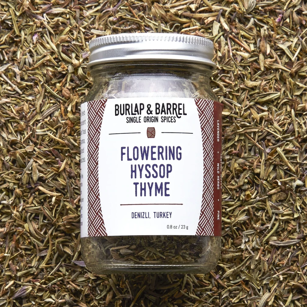 Flowering Hyssop Thyme has a beautiful floral, herbaceous flavor and aroma. It has an ancient history of culinary and medicinal usage. Use it in place of regular thyme with roasted chicken, grilled vegetables and tomato sauces.
