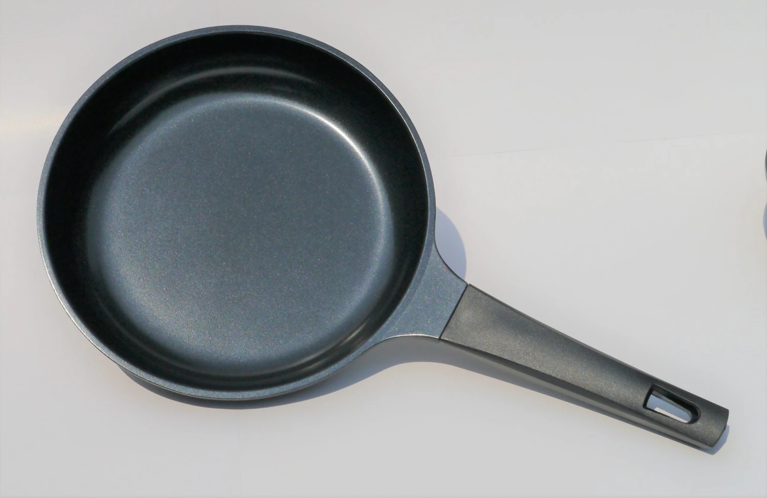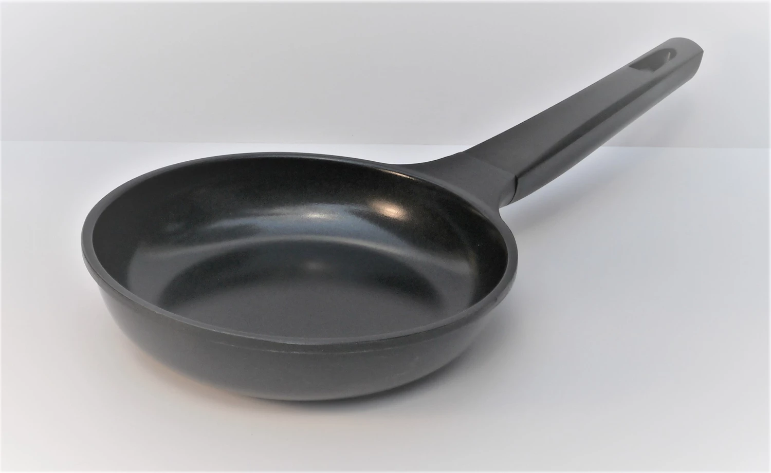 The Evaco fry pan is cast in one solid piece of aluminum with extra heavy bases and tapered sides with reinforced rims. The pans are heavy where it counts without unnecessary weight on the sides. When it comes to heat-conduction, aluminum is second only to solid copper and cooking techniques are very similar. The pans heat up quickly and cool off quickly when you when you take them off the heat.