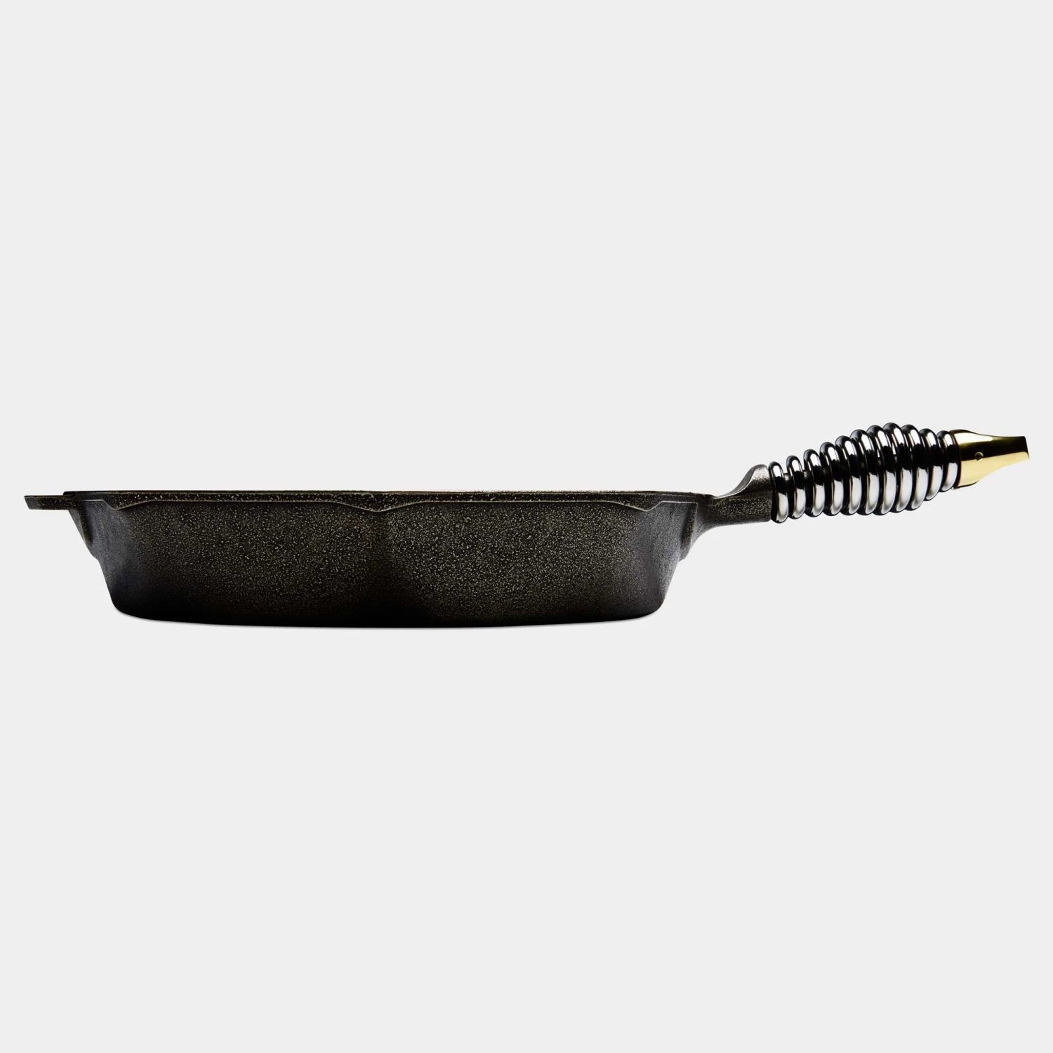 Like the best antique skillets, Finex Cast Iron Skillets have a polished ultra-smooth cook surface that minimizes sticking and cleaning. Unlike your grandparents’ skillet, its distinctive geometric shape is pouring friendly. That means less spills and drips, which makes for less clean up. The ergonomic stainless steel spring handle cools down quickly, so no need for bulky oven mitts or floppy grabbers while you’re cooking. The ribbed helper handle on the front lip makes it easy to lift the pan and transfer it from stovetop to table, and the brass cap makes it easy to hang the pan when your done.