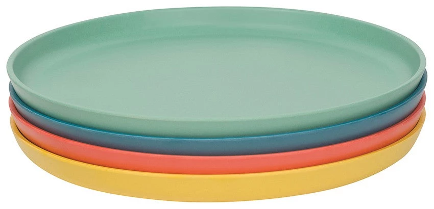 Celebrate summer dining with festive plates perfect for picnics and patios. A range of bold, bright colors will turn any occasion into a fun-filled fiesta. Sets of 4. 60% melamine 40% plant fiber