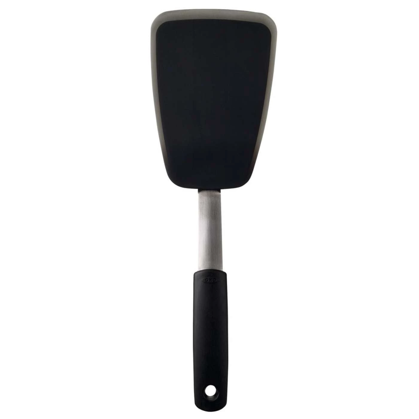 The OXO Silicone Flexible Turners combine the strength of stainless steel with the heat resistance and non-stick friendliness of a silicone outer layer. Thin, flexible edges glide under foods in the pan to keep them intact. Great spatula for flipping eggs, burgers, crepes and more.