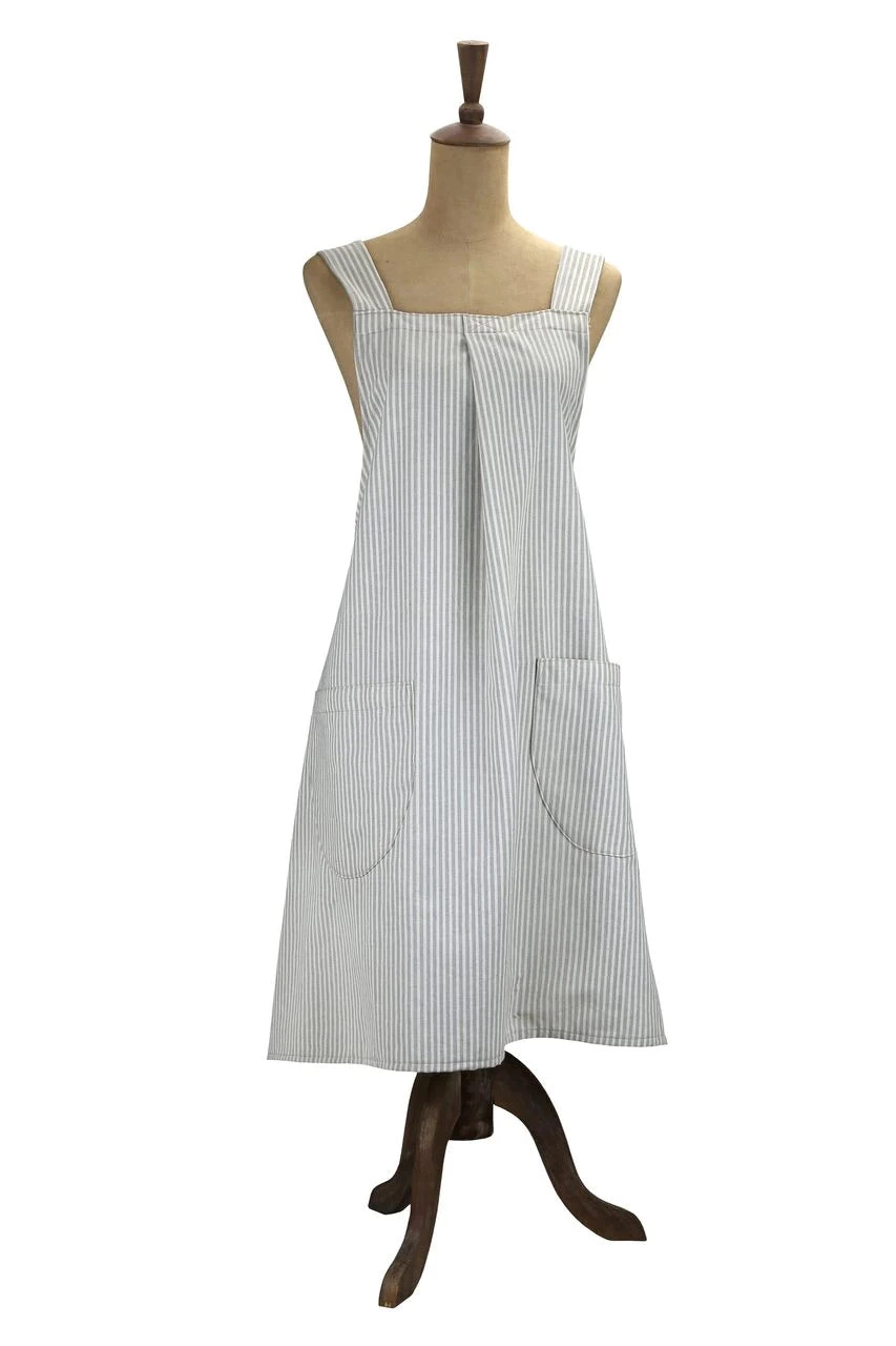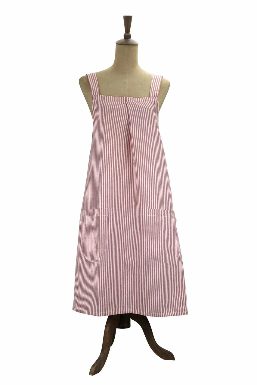 Cover up in style with this terra cotta stripe apron. Easily slips over your head, so no tying needed. Made by Raine & Humble, an Australian company that integrates a recycled fabric initiative and says no to plastic packaging. They uphold industry-leading European standards in dyeing and textile manufacture.