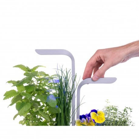 The light is automatically controlled to imitate the natural daylight cycle, remaining active for 16 hours daily and off for 8 hours. While the Classic Garden’s light is constant throughout the day, the Smart Garden automatically adjusts the LED’s intensity depending on your ambient light, to distribute the perfect amount of light to your plants. It employs a color spectrum adapted specifically for edible plants; special light color and performance ensure quick growth and develop the flavor of your plants. The Veritable® Garden doesn’t need any natural light to grow, you can put it in a room without any windows. Two lighting poles adjust independently to adapt to different plant sizes and growth speed.