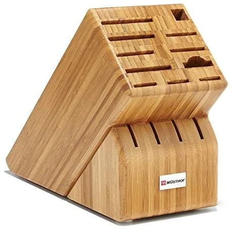 - BAMBOO BUTCHER BLOCK – Holds up to 15-piece set of knives (knives sold separately